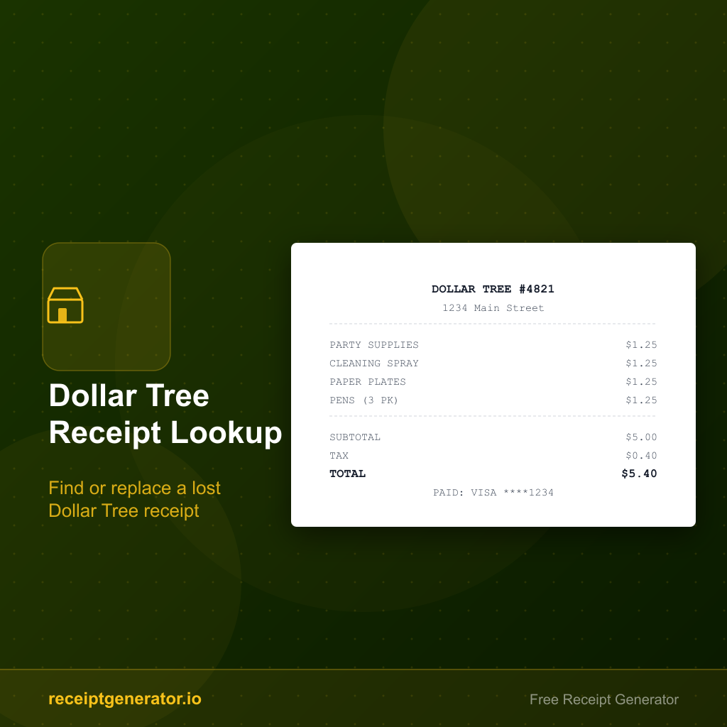 If you need a backup record after recovering the details, use the Dollar Tree Receipt Generator to create a clean PDF from your verified purchase information.