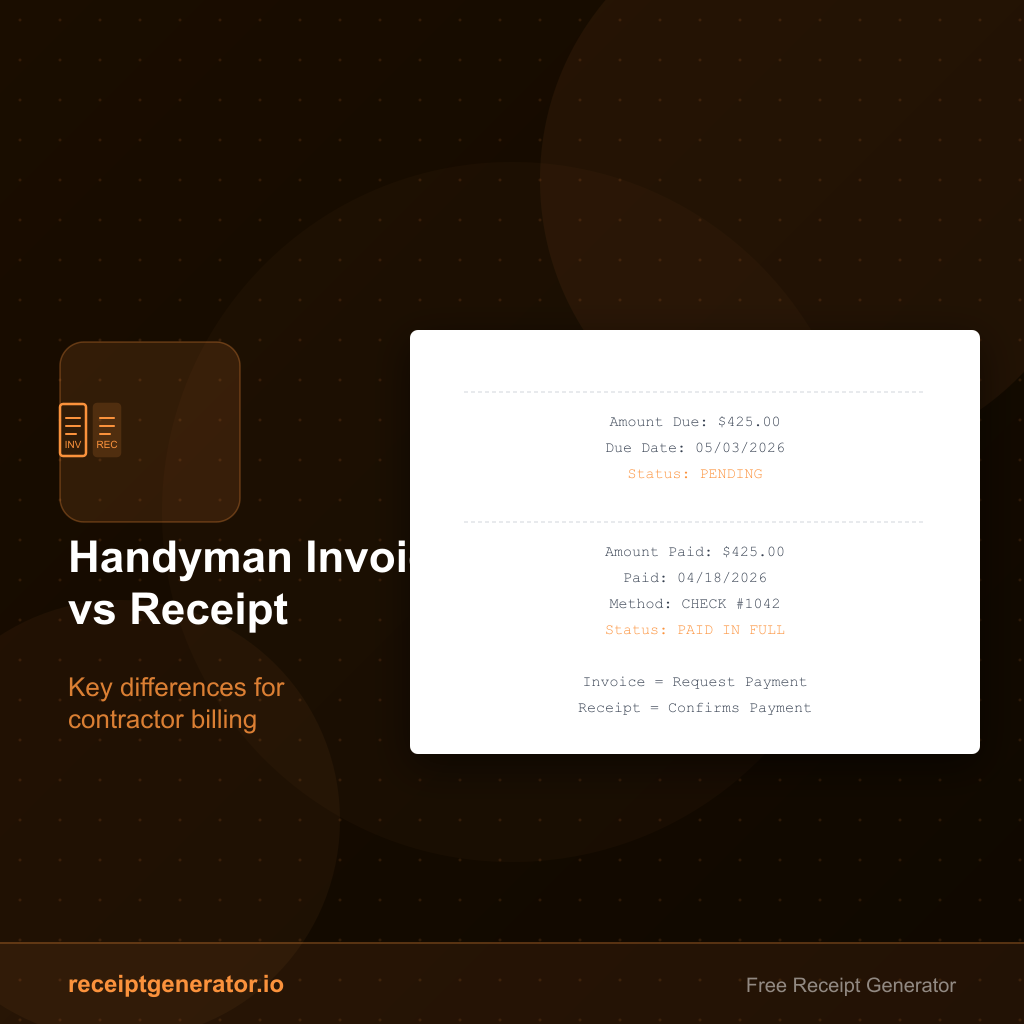 Handymen often use the terms invoice and receipt interchangeably — but they're different documents that serve different purposes. Using both correctly protects you legally and makes bookkeeping much simpler.