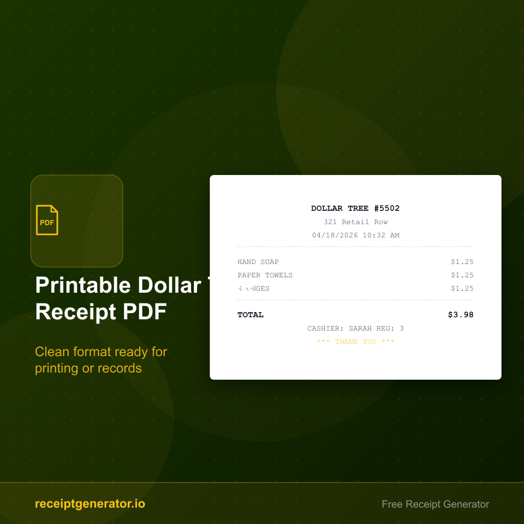 A printable Dollar Tree receipt PDF should be simple, readable, and based on verified purchase details. Start with the original store receipt or card statement, then save a clean PDF version for your records.