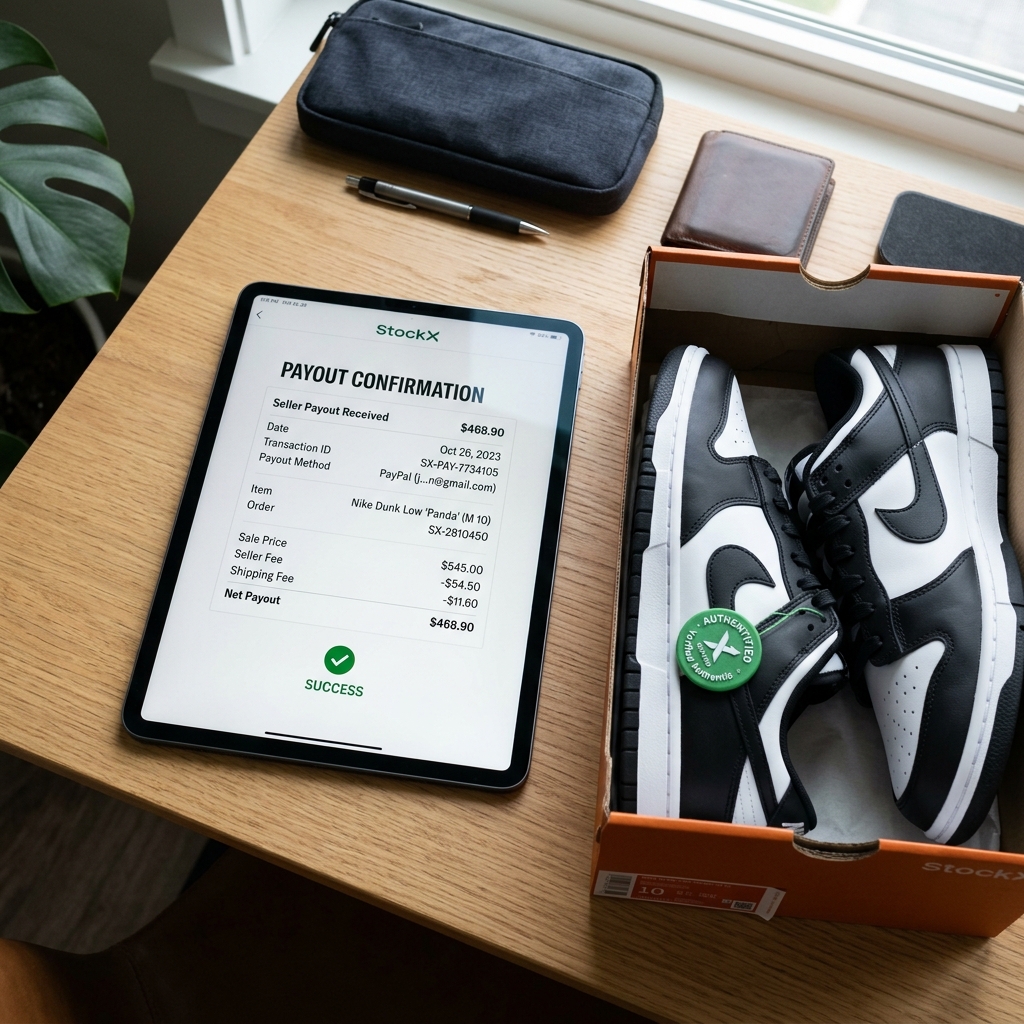 A StockX seller payout receipt should clearly show the item sold, sale price, fees, and net payout in one readable record.